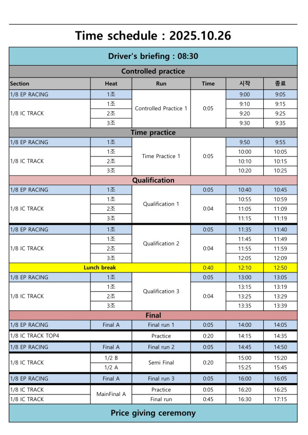 2025 KMRCA 1/8 온로드 레이싱 한국선수권대회 일정표 작성자 정보 KMRCA 작성 작성일 2025.10.23 18:48 컨텐츠 정보 44 조회 목록 본문 2025 KMRCA 1/8 온로드 레이싱 한국선수권대회 일정표 관련자료 댓글 0 등록된 댓글이 없습니다. 로그인한 회원만 댓글 등록이 가능합니다. 목록